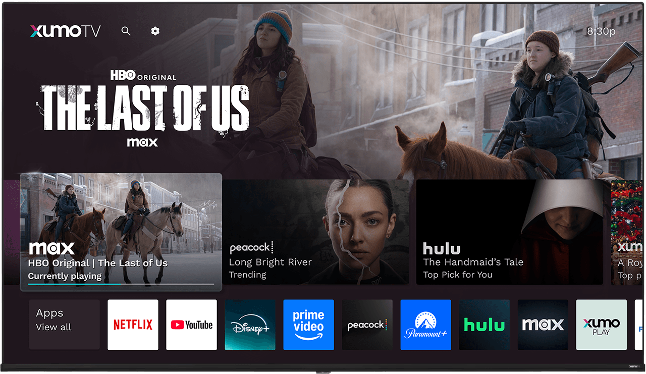 Imágenes de pantalla a modo de ilustración. La pantalla real puede variar. El control remoto real puede variar. Se requieren suscripciones separadas para ver contenidos a través de varias aplicaciones de pago. Se aplican términos. Xumo, Xumo Play, Xumo Stream Box y todos los demás nombres de productos, logotipos, eslóganes o marcas de Xumo son marcas comerciales de Xumo o de sus licenciantes. ©2024 Xumo. Servicios sujetos a todos los términos y las condiciones de servicio aplicables, sujetos a cambios. Los servicios no están disponibles en todas las áreas. Se aplican restricciones.
